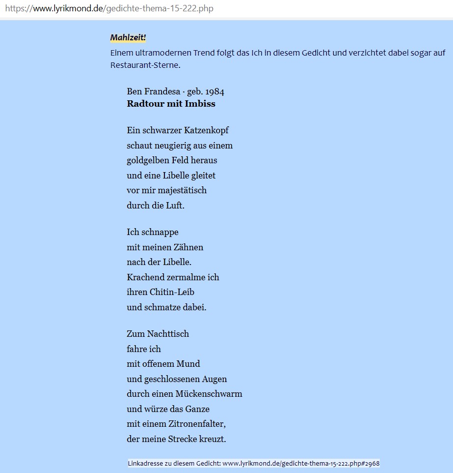 Online-Veröffentlichung beim Lyrikmond-Wettbewerb 2022 zum Thema Tiergedichte.